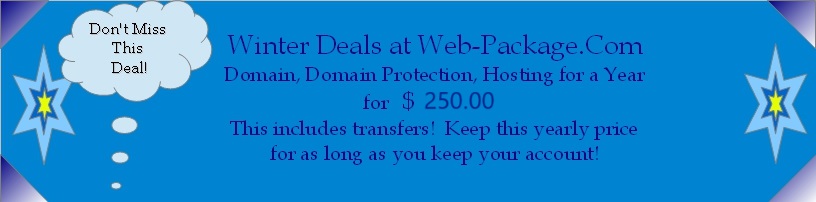 WEB-PACKAGE.COM is your easy way to the web!  We will help you get your site online by explaining the process, helping you secure your own .com name, and hosting your site.  We can design and code your site for your, or you can take care of that yourself using your own c-panel hosting control panel.